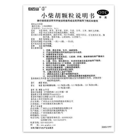 Baiyunshan Xiao Chai Hu Granules – 10g × 6 Bags